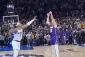 湖人球员肯纳德在最后0.6秒命中绝杀三分。