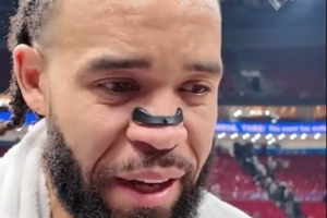 东契奇脸被抓出血痕