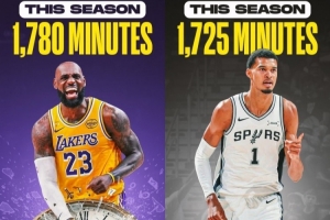 本赛季文班亚马出战59场比赛,场均出战29.3分钟