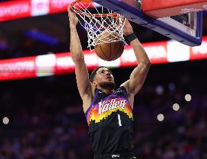 前三节,太阳球星布克表现出色,打了29分钟25投13中,三分5中4、罚球11中11砍下41分7篮板4助攻1盖帽。