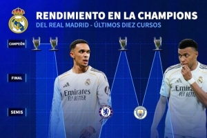 体育资讯4月16日讯 欧冠1/4决赛次回合比赛,皇马客场3-4不敌拜仁,两回合总比分4-6出局。德国转会市场盘点了皇马近10个赛季的欧冠成绩。