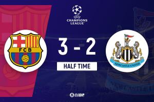 半场结束,巴萨暂3-2纽卡。